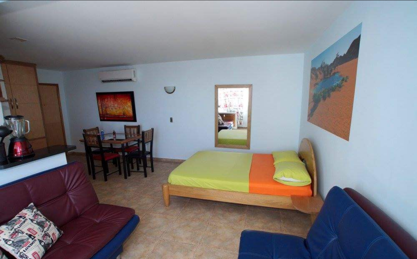 Cuenta con 1 Cama Doble, 2 Sofacama, Centro de Entretenimiento, TV LED, Aire Acondicionado,Closet,Cocina tipo americana con todos sus implementos,Baño en vidrio templado y porcelanato, lo más importante una majestuosa vista, Hopedaje para 4 personas cómodamente.